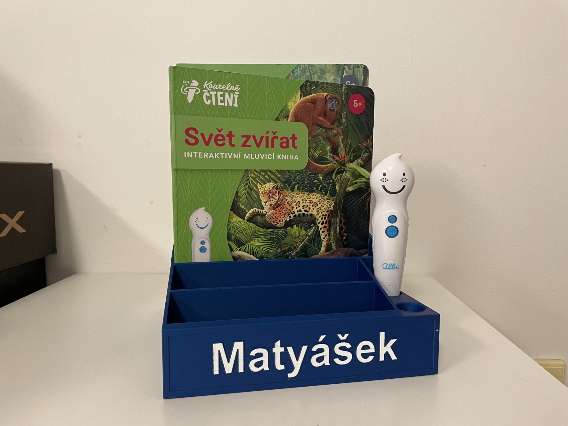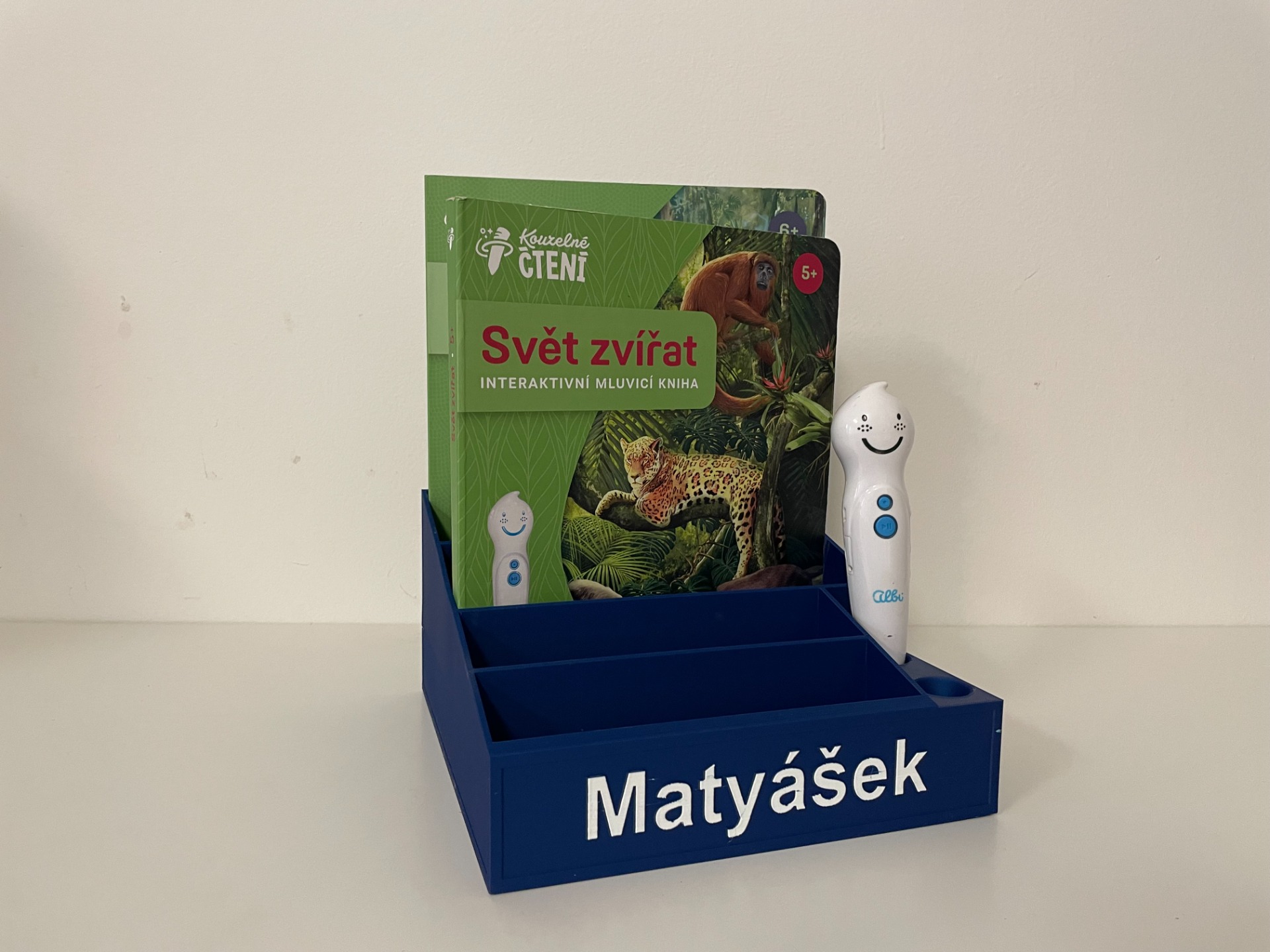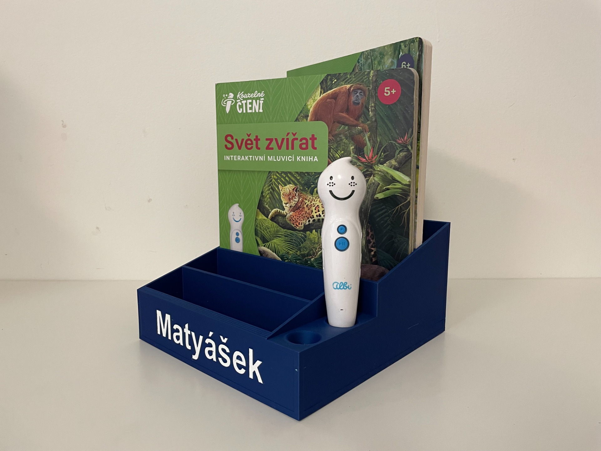 Udrž si pořádek s Albi stojánkem na pero a knihy s multifunkčním organizérem navrženým speciálně pro čtecí tužku Albi a knihy, se kterými pracuješ nejčastěji. Robustní konstrukce a promyšlené uspořádání přihrádek umožňuje pohodlné ukládání čtecí tužky, psacích potřeb a zároveň přehledné vystavení knih, sešitů nebo poznámkových bloků.