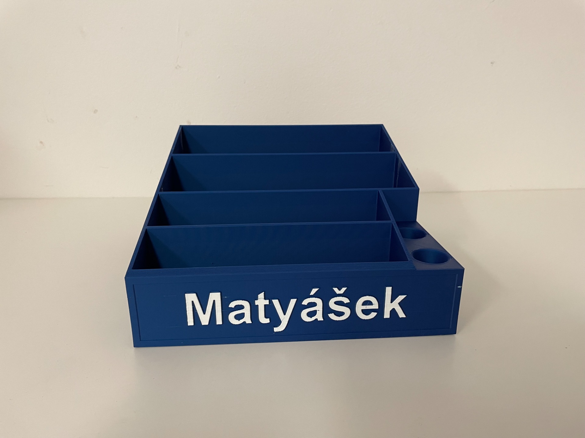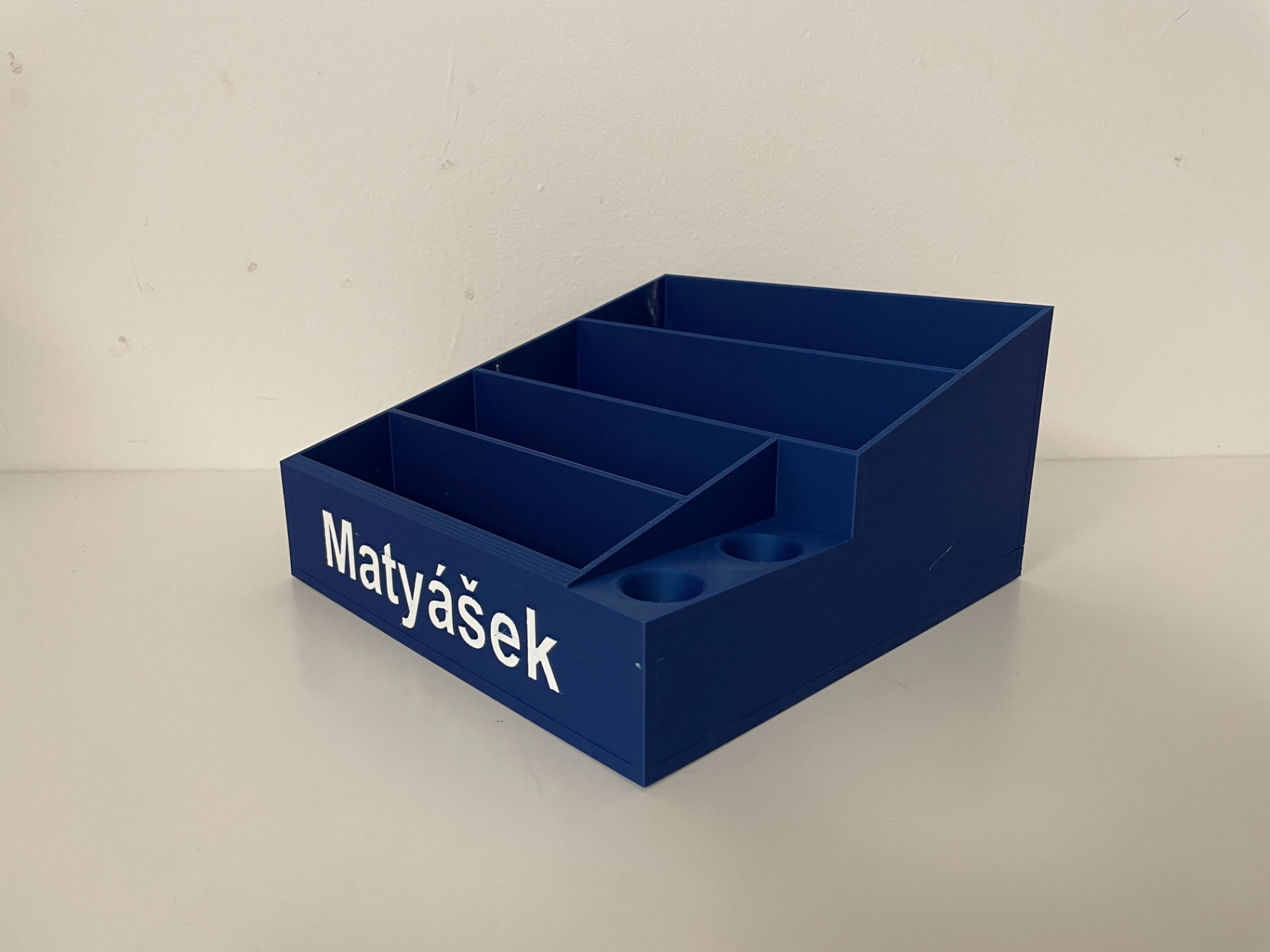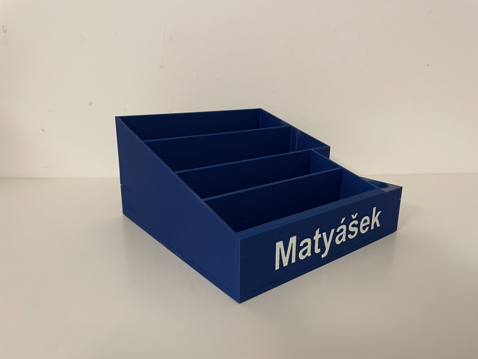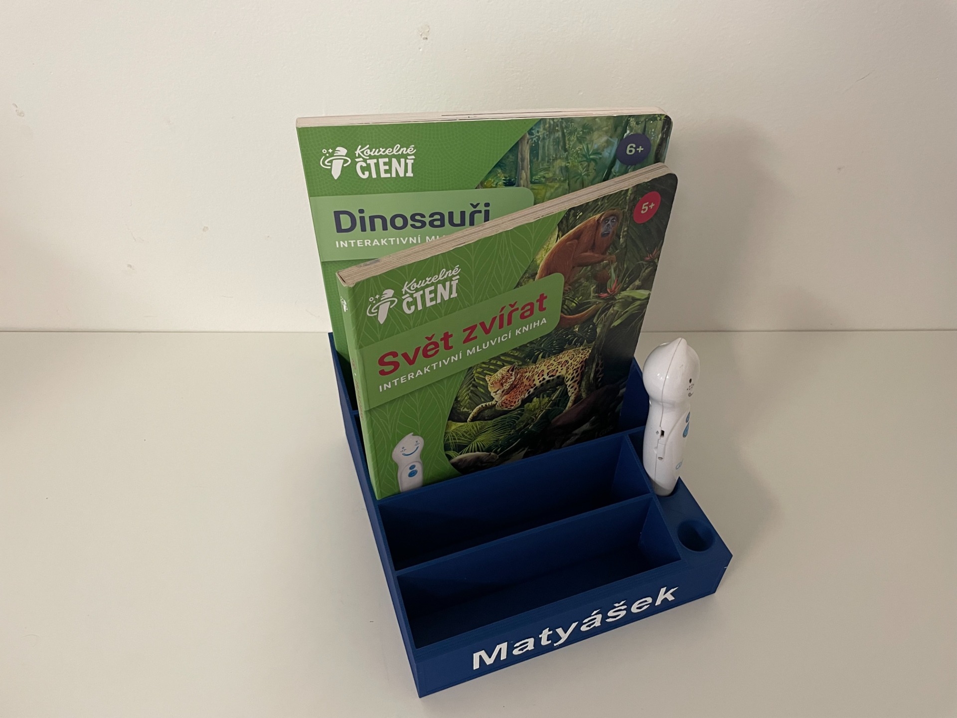 Udrž si pořádek s Albi stojánkem na pero a knihy s multifunkčním organizérem navrženým speciálně pro čtecí tužku Albi a knihy, se kterými pracuješ nejčastěji. Robustní konstrukce a promyšlené uspořádání přihrádek umožňuje pohodlné ukládání čtecí tužky, psacích potřeb a zároveň přehledné vystavení knih, sešitů nebo poznámkových bloků.