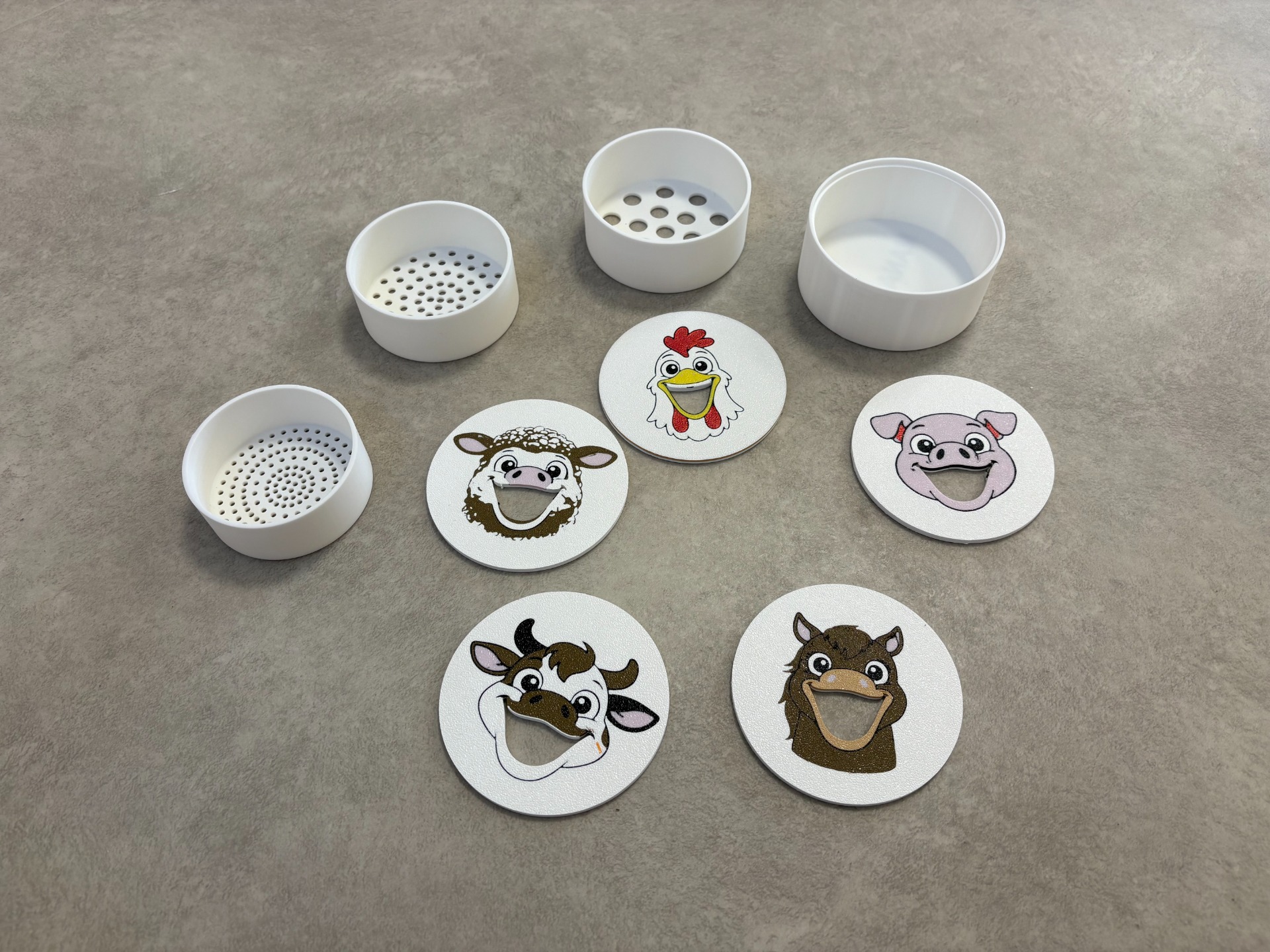Ideální pro smyslohraní, poznávání zvířat a kreativní hru doma i ve školce. 🐄🐑🐖🐎🐓