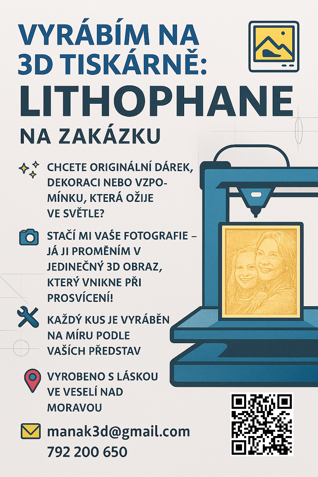 Lithoplane je 3D tištěný obraz, ve kterém se fotografie zobrazí při prosvícení. Díky rozdílné tloušťce materiálu se při světle zezadu objeví detailní motiv nebo portrét. Vhodné jako originální dárek, památka nebo dekorace.