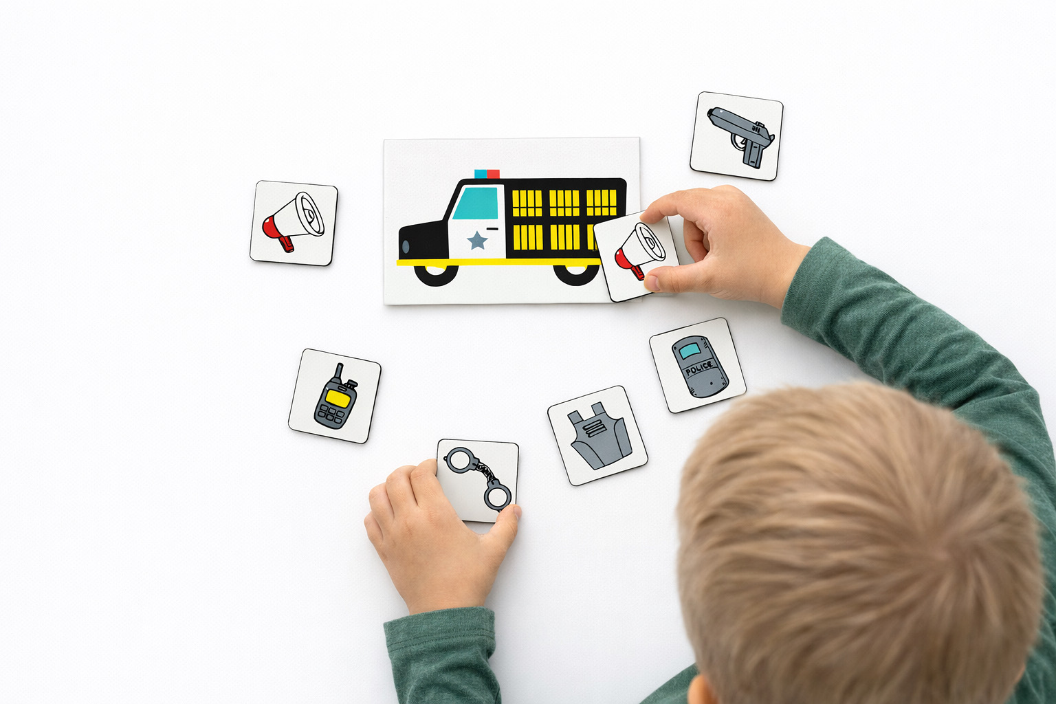 Děti přiřazují kartičky s předměty k záchranným složkám a objevují, co používají záchranáři, hasiči nebo policisté. Aktivita rozvíjí logické myšlení, slovní zásobu a pomáhá dětem pochopit, jak fungují tísňové služby. Skvělé pro mateřské školy, první stupeň ZŠ i domácí učení.